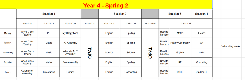 Our Timetable