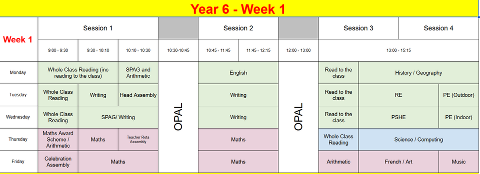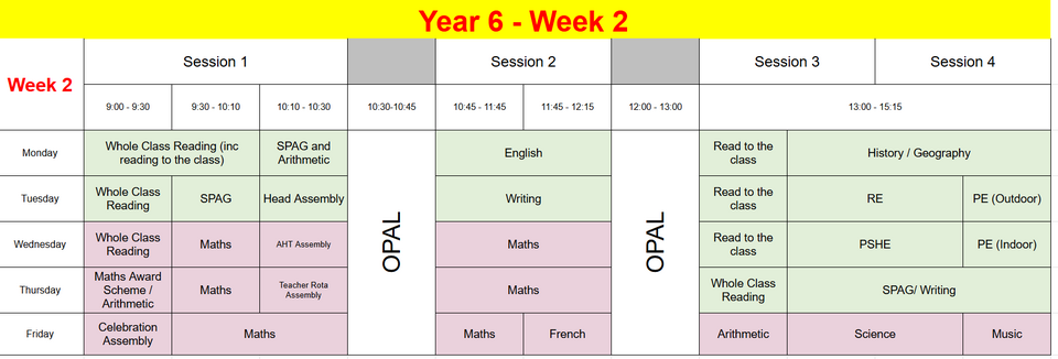 Please note that our timetable is fluid and will change during the year to ensure full national curriculum coverage and allow for immerse enrichment days for certain subjects. This is an example of what it may look like. In Spring 2026, PE days will be Tuesdays (indoor) and Wednesdays (outdoor). Children should come to school in their PE kits on these days.